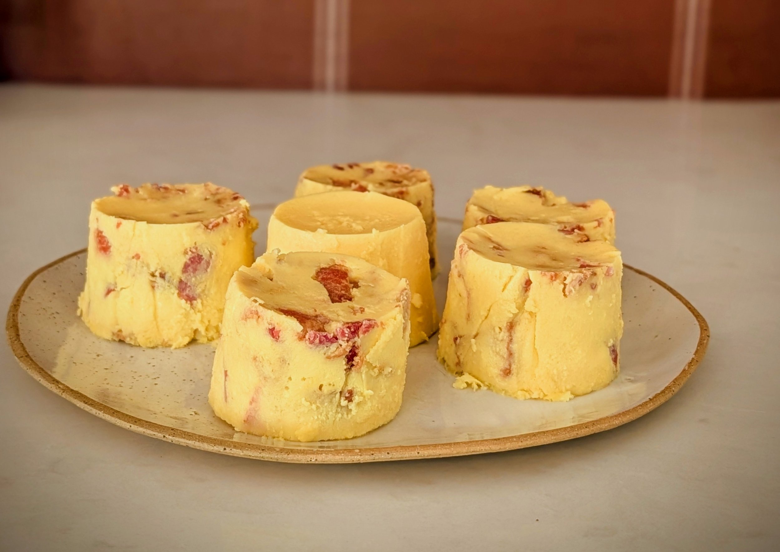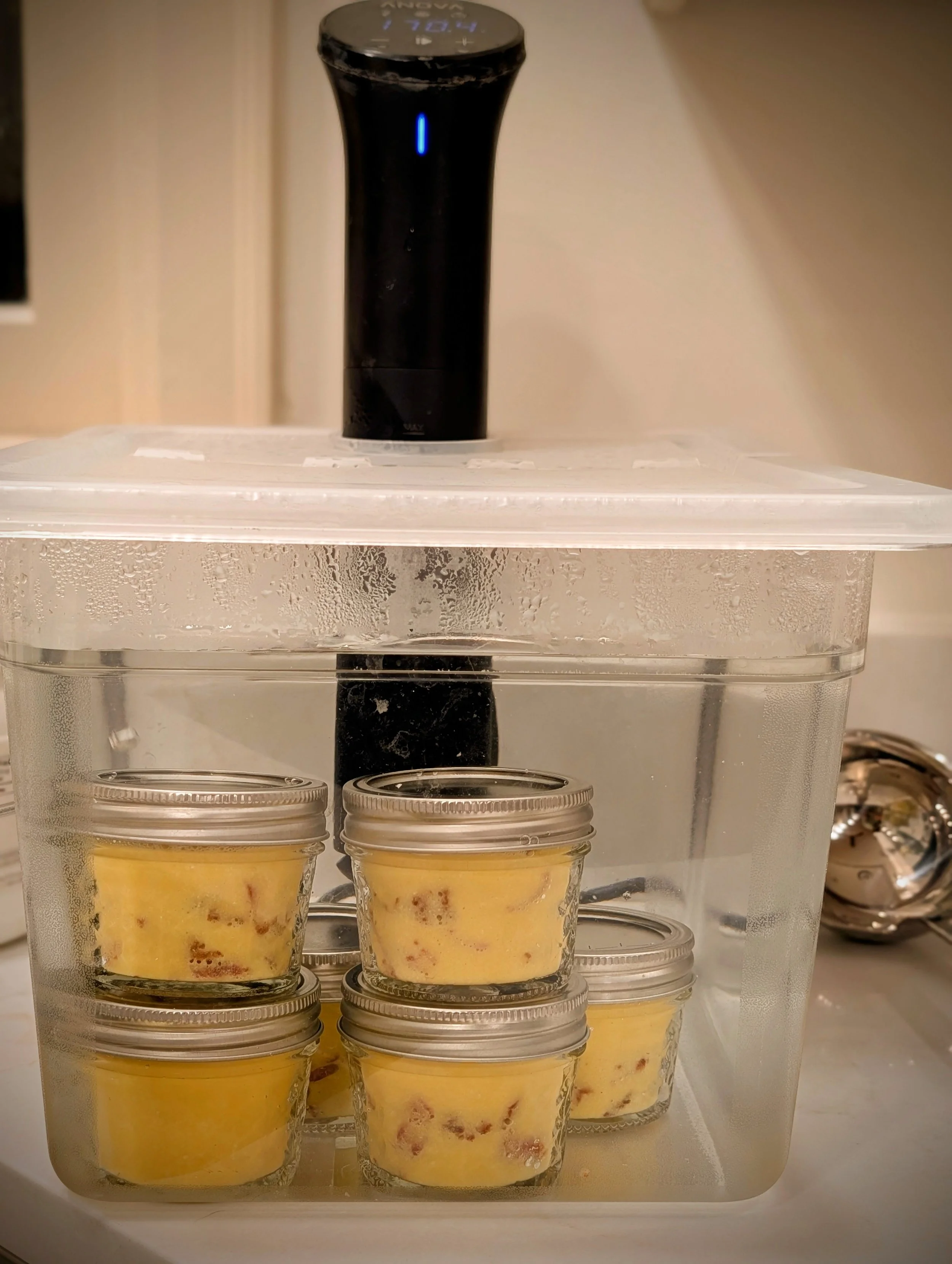 Carefully remove from sous vide and let cool, then remove from containers. You may need to use a knife to get the mixture to separate from the jar (I’m trying to figure out a recipe that pops right out).